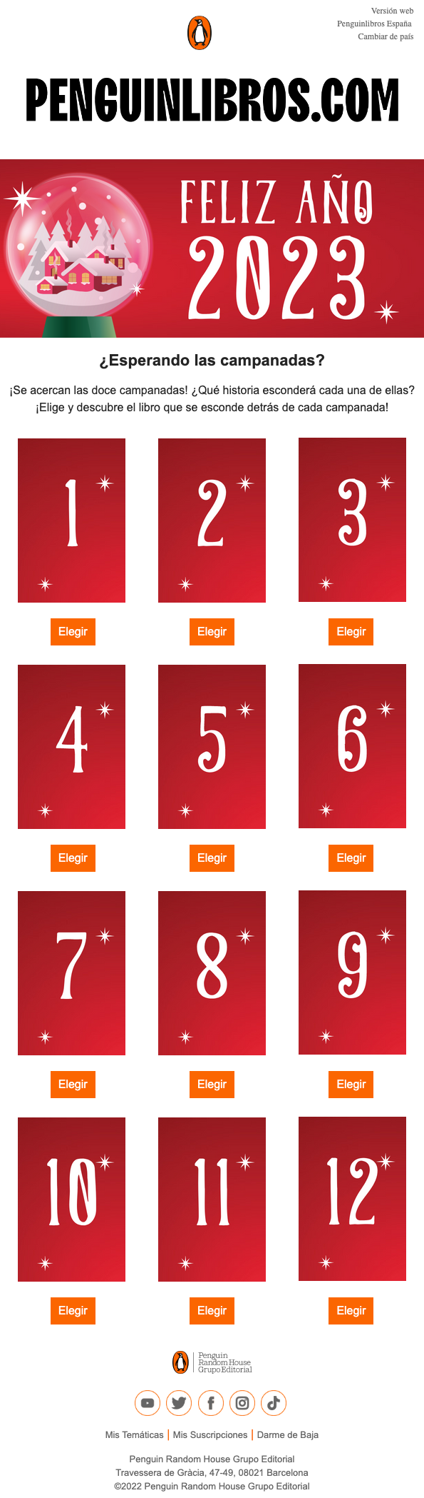 Todos los ejemplos que vamos a ver podrían enviarse en cualquier momento del año. La diferencia es que alrededor de Nochevieja y Año Nuevo se abre una ventana de oportunidad en la que tu audiencia lo está esperando y lo va a recibir con los brazos abiertos.