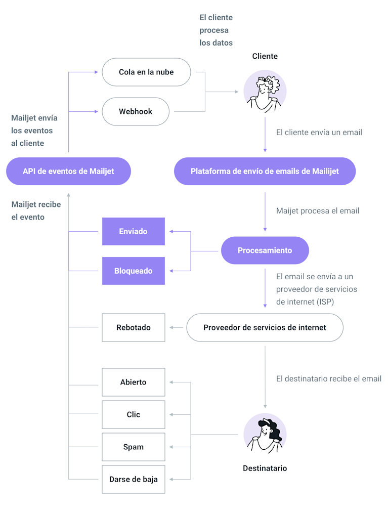 Los webhooks son una potente forma de recibir notificaciones en tiempo real cuando se producen eventos en tus campañas de email. Esta completa guía te enseñará qué son los webhooks, cómo funcionan con los sistemas de correo electrónico y cómo implementar la funcionalidad de webhooks de Mailjet para realizar un seguimiento en tiempo real de eventos de email como aperturas, clics, rebotes y mucho más.