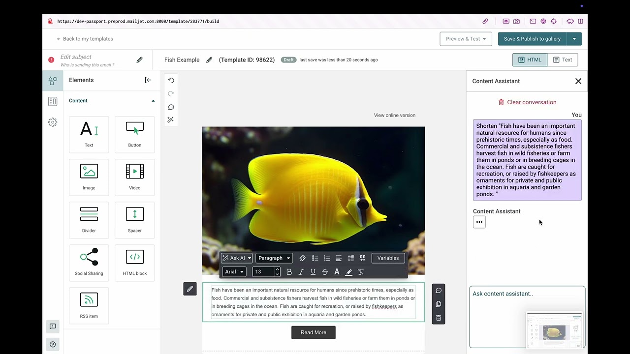 Mailjet’s email newsletter service simplifies this process by letting you store and apply your brand’s fonts, colors, and logo to every email by just copying and pasting your URL. This ensures that every email matches your brand identity, whether it’s created by you or another team member.