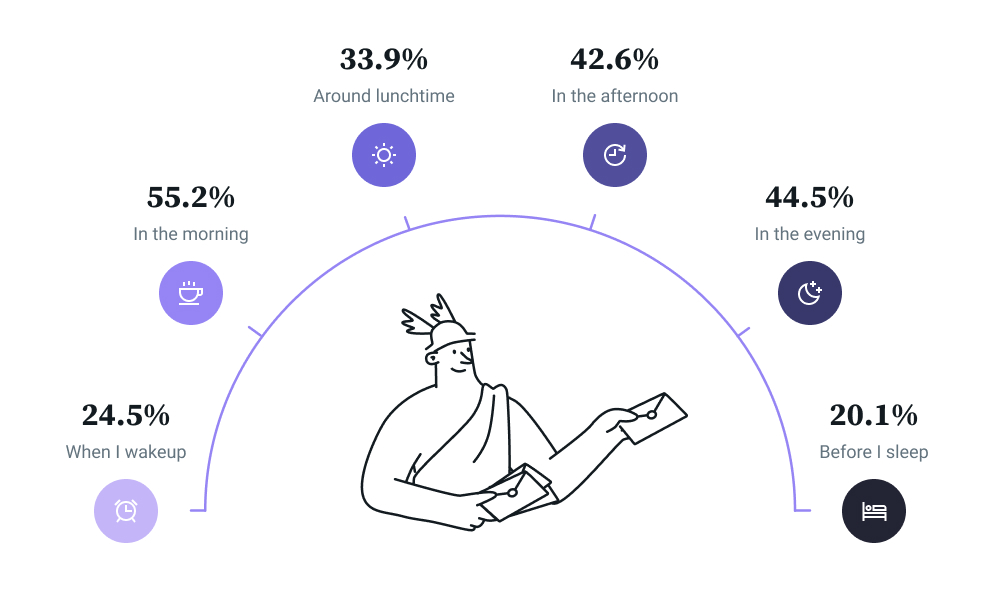 Newsletters can reach recipients anywhere. Whether they are in the office, on their work computer, on the sofa at home on a tablet, or on the go on their smartphone, emails are opened and read anywhere. Our research shows that people check their emails multiple times a day, but of course, there are ways to be tactful with timing.