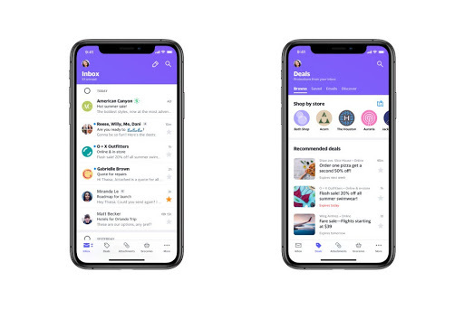 A Yahoo mobile layout with two different Views, the primary inbox and Deals: