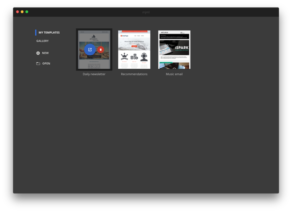 The MJML app comes with a list of templates ready to use in a single click and a customizable live editor for you to play around with and manage your transactional and marketing emails. It is free to download and available for OSX, Linux and Windows.