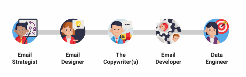 Jedes Team fungiert anders, aber am Ende des Tages gibt es folgende Archetypen in Ihrem E-Mail Marketing Workflow, die einbezogen werden sollten: