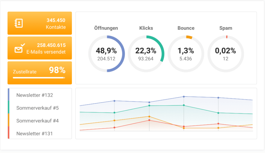Hierbei unterstützen Sie aussagekräftige Statistiken, die Ihnen einen Überblick über die Kennzahlen Ihrer E-Mail-Kampagnen verschaffen: