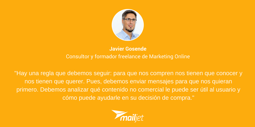 Debemos analizar qué contenido no comercial le puede ser útil al usuario y cómo puede ayudarle en su decisión de compra. Ese será un buen email para nuestra base de datos.