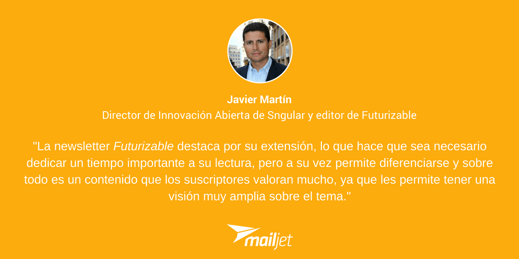 Ahora el blog de Javier Martín es público, pero cada semana sigue enviando una newsletter con el artículo completo que se ha publicado. De este modo, sus contactos pueden seguir leyendo sus artículos sin salir de la bandeja de entrada, y los que aún no le conocen pueden descubrirlo navegando por la red.