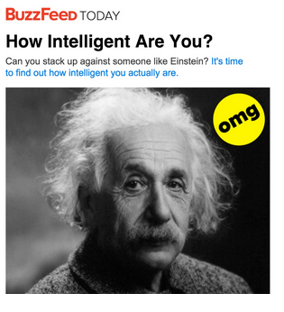 Verás que prácticamente todo lo que hace Buzzfeed está enfocado en el entretenimiento: la forma en la que eligen sus historias, la forma en la que escriben sus titulares y la forma en la que sus emails están diseñados.