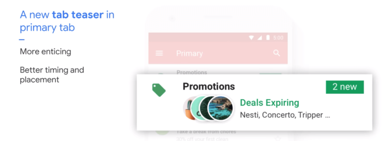 Gmail también muestra una vista previa de la pestaña Promociones en la bandeja de entrada principal. Esta es otra buena razón para activar las Anotaciones en tus campañas de email.