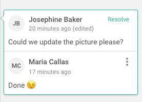 ¿Has resuelto un comentario? Archívalo en la pestaña «Resuelto». Podrás volver a abrir los comentarios resueltos en cualquier momento para verlos de nuevo.