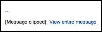 Gmail raccourcit les emails HTML dont la taille est supérieure à 102 Ko, en n’affichant que les 102 premiers kilooctets et en coupant la suite. Le lecteur verra apparaître le message et le lien suivants, qui permet d’afficher le reste de l’email. Le message peut varier selon l’appareil utilisé.