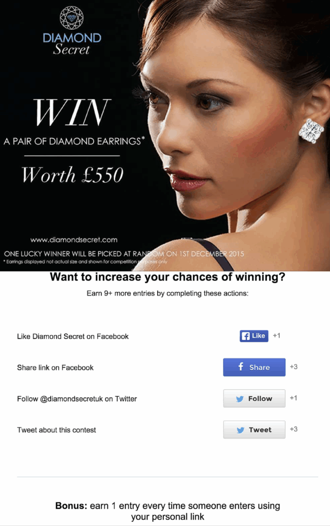 La fonctionnalité de partage pour augmenter ses chances de victoires est géniale. Non seulement, votre concours gagne en visibilité, mais elle peut également être intégrée à un email ! Diamond Secret s’en est servi dans sa campagne.